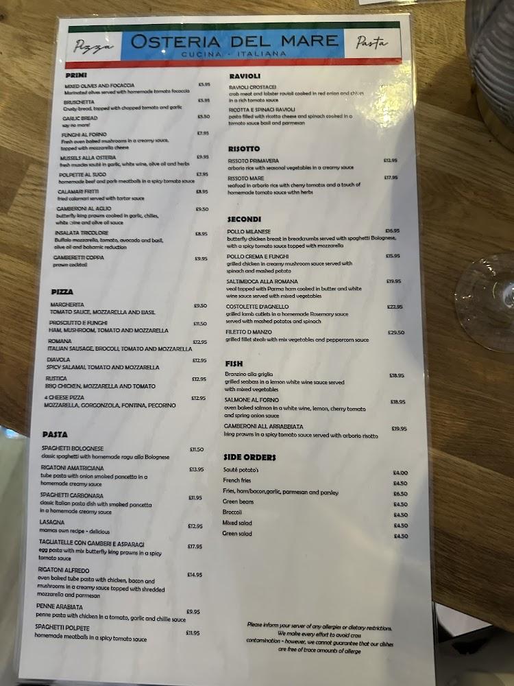 Situated in Frinton-on-Sea, Osteria Del Mare adds a taste of Italy to this coastal town. This area is known for its picturesque landscapes and quiet beaches, making it a popular spot for families and visitors alike. The location boasts free street parking, a rare find in this lovely seaside town, ensuring easy access for all. Guests can enjoy the fresh sea air while dining outdoors, a real perk during the warmer months. Offering delicious Italian cuisine in a bustling atmosphere, Osteria Del Mare quickly became a local favorite since opening, bringing life to the dining scene in Frinton. With a varied demographic visiting the establishment, from young families to older couples, it has successfully established itself as a go-to eatery for individuals across all age groups.